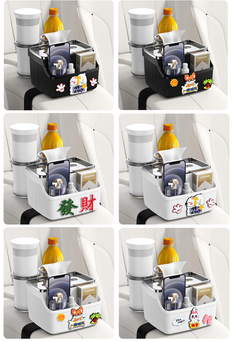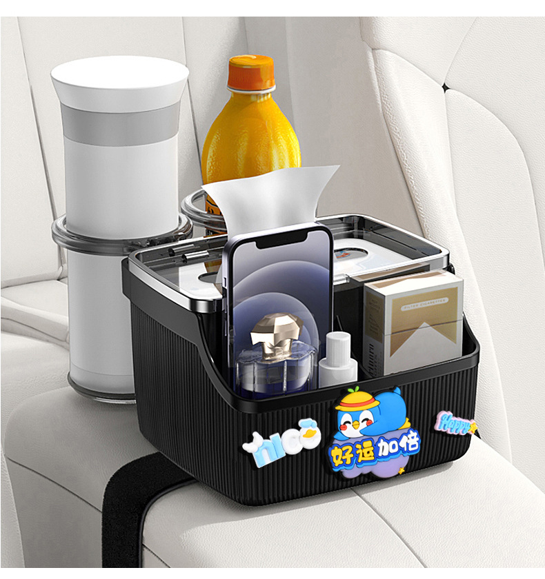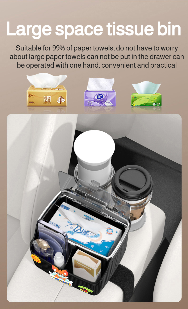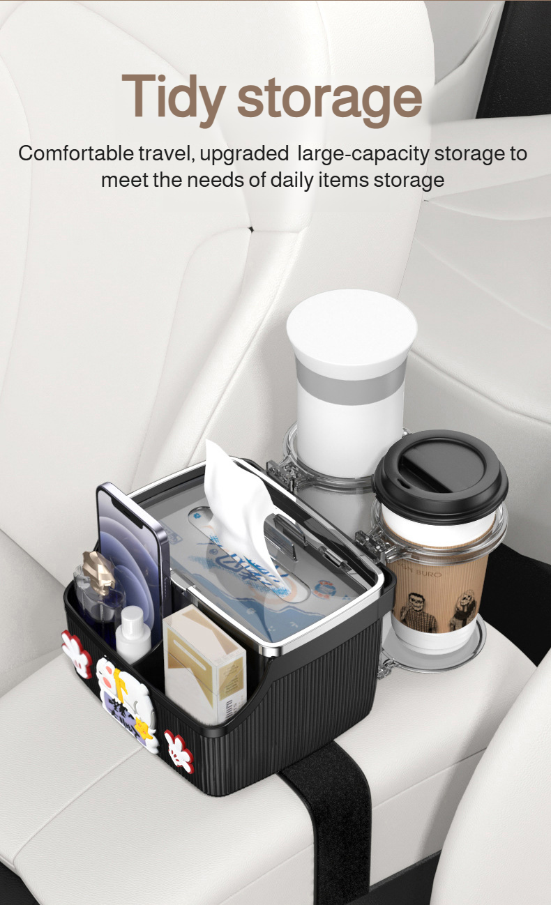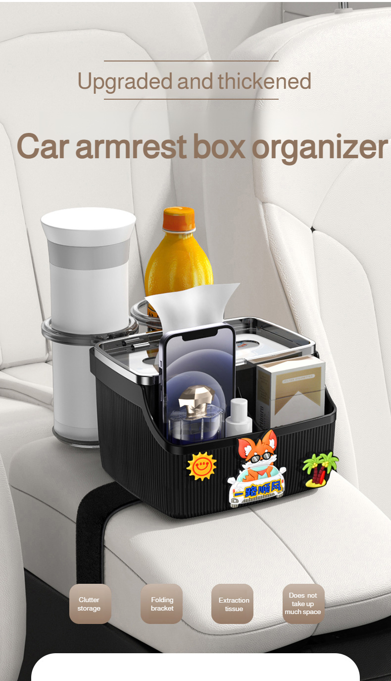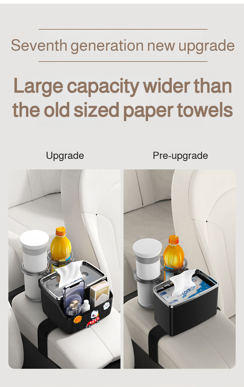 Car Armrest Box Upgraded 2 in 1 Storage Cup Holder Tissue Box