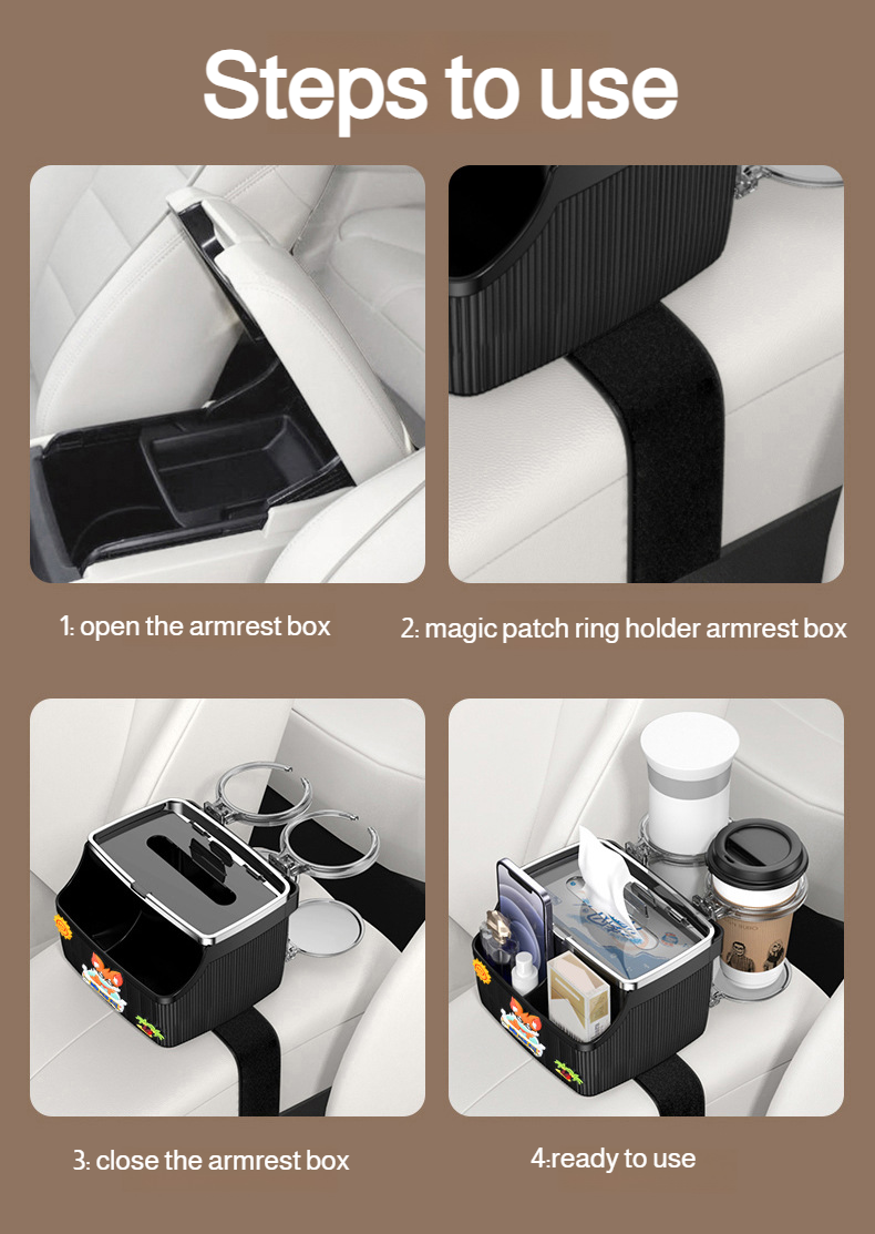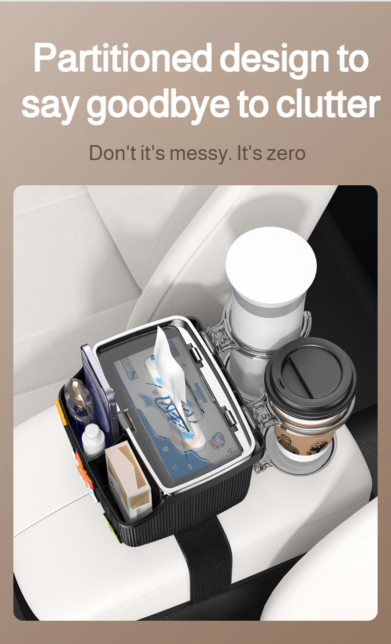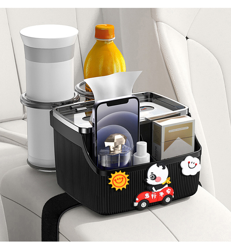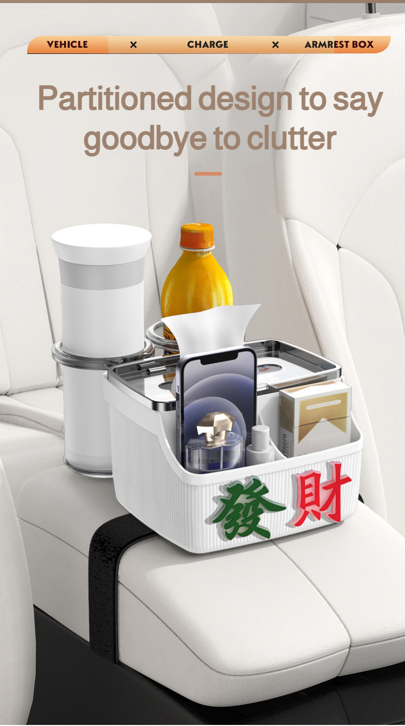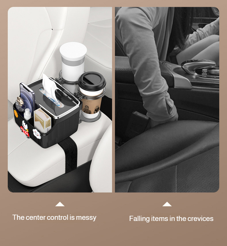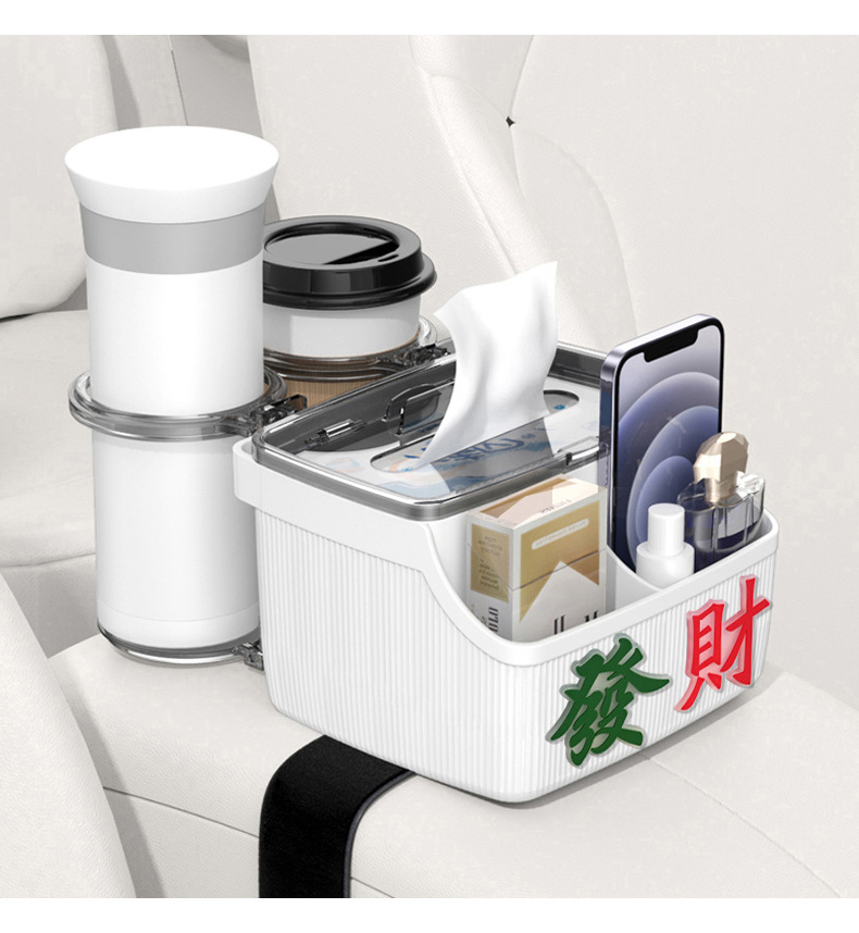 Car Armrest Box Upgraded 2 in 1 Storage Cup Holder Tissue Box